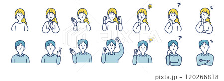 一組男人和女人表達各種喜悅的插圖,人物,手繪