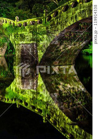 中島川和眼鏡橋的夜燈光【長崎市】