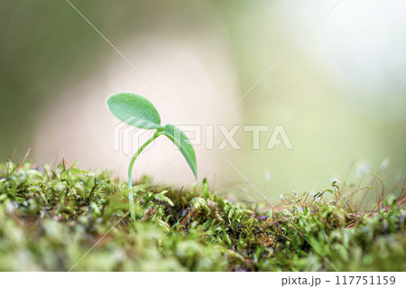 幼葉從老樹的青苔中發芽