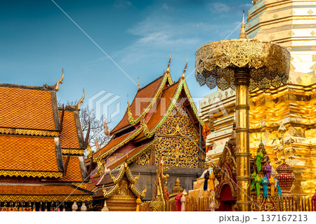 Golden temple, Doi Suthep, landmark of Chiangmai, Thailand