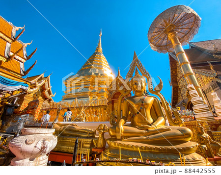 Landmarks, important tourist attractions in Chiang Mai, Phra That Doi Suthep, large golden pagoda at Thailand