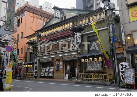 燈籠照亮的落語劇場[新宿末廣亭]的入口(東京都新宿區新宿)