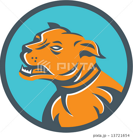 Angry Bulldog Mongrel Head Circle Retro
