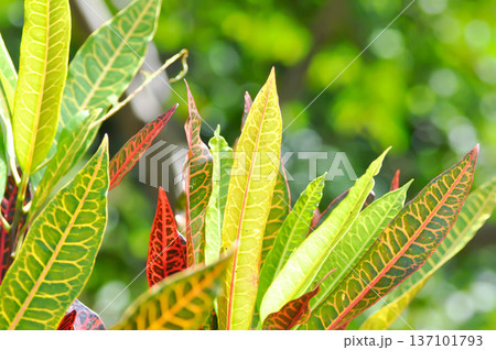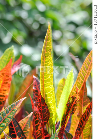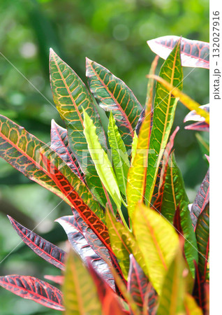 Codiaeum variegatium Blume or Croton, Variegated Laurel or Garden Croton or red leaf