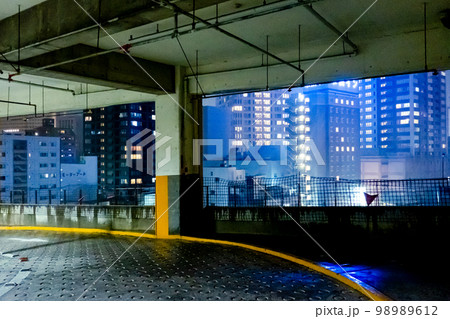 下雨天的風景 - 從車內看到的商業設施停車場 - 不流雨水的擋風玻璃