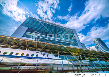 日本橫濱城市景觀 橫濱車站在夕陽下閃閃發光。雨季的炎熱和潮濕……6月25日