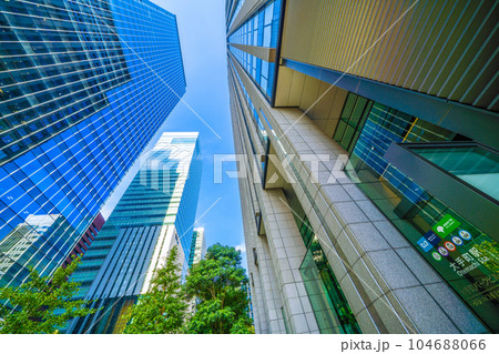 日本東京城市景觀七月。俯瞰“大手町”十字路口前的摩天大樓=6號