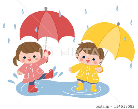 孩子們穿著雨傘和雨傘
