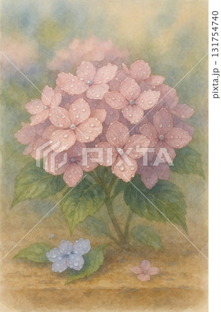 露水粉繡球|柔和水彩畫|清晨花香自然美