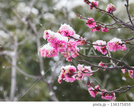 梅花,覆滿白雪的紅梅花,雪中的梅花