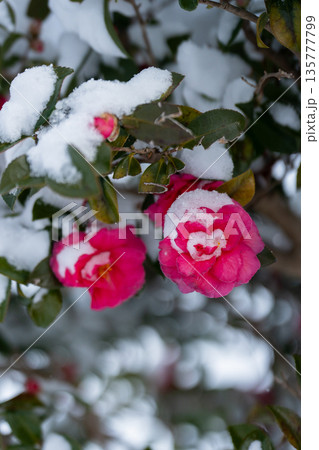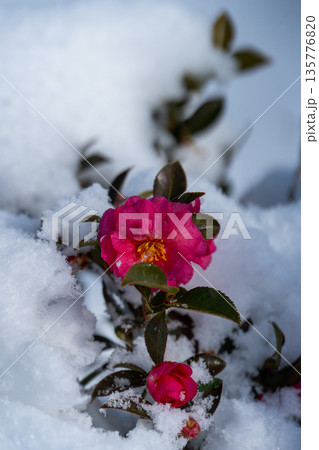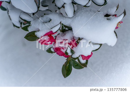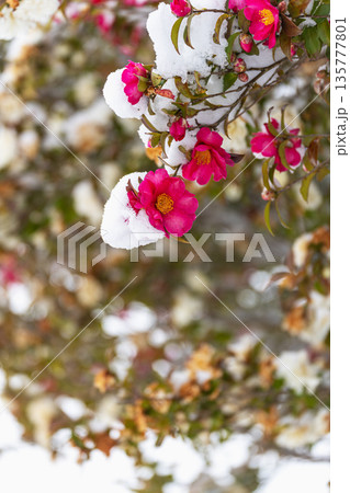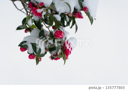 雪覆蓋的山茶花