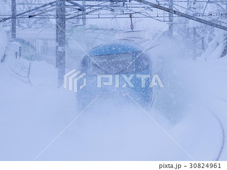 宗谷本線拉塞爾車廂被雪覆蓋的冬季車站
