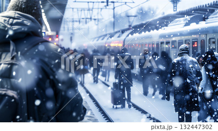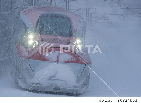 冬季景色:蒸汽機車行駛在白雪皚皚的景色中