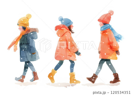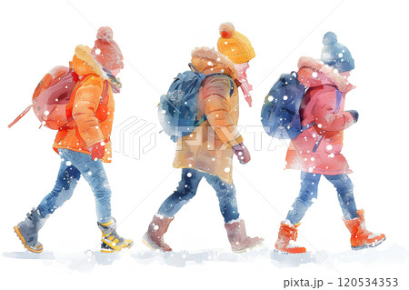 冬日放學回來的孩子們