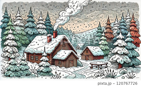 冬天靜謐的雪村|雪屋和樹木的美景