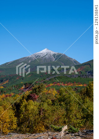美瑛山,初冬白雪皚皚的山峰,背景是藍天