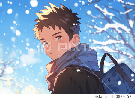 冬季背景,雪花散落,冰藍色日本紙,帶耳朵