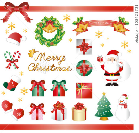 聖誕裝飾圖示禮物聖誕老人樹花圈絲帶插圖集