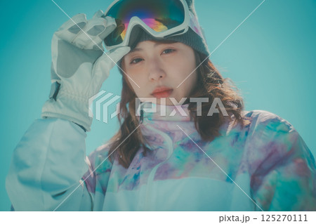 AI 圖片:藍天滑雪勝地穿著滑雪服的年輕女子