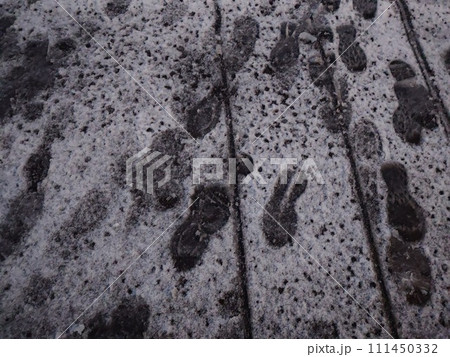 【手機拍攝】雪中的腳印和車輪痕跡地點:東京新宿區