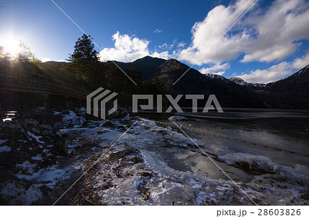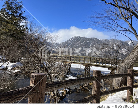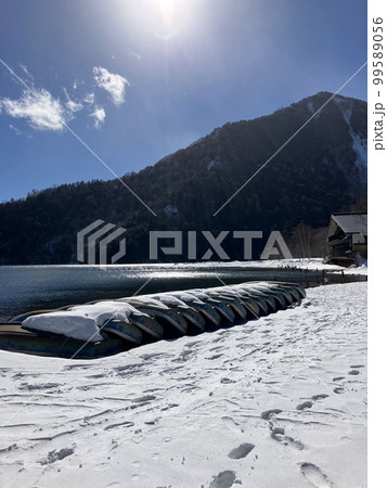 在冬天雪結冰的 Okunikkoyu 湖