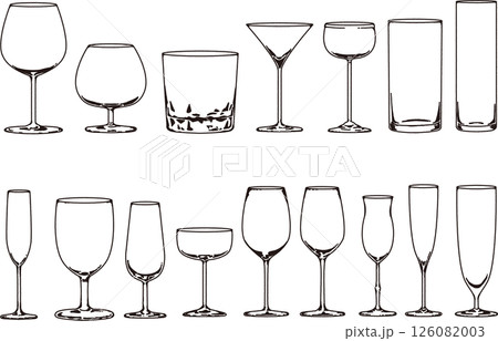 Glass of liquor black and white linear sketch. Vector ink drawing of a glass. Alcoholic beverage Nocino