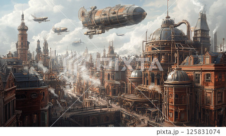 擁有飛艇的蒸氣龐克城市