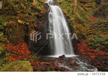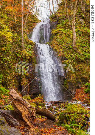 秋天的Oirase山間溪流“Kumoi瀑布”和一個支柱