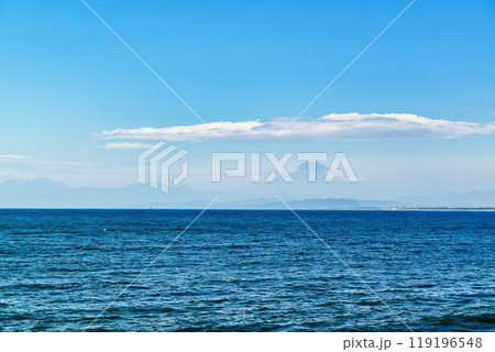 從江之島眺望富士山:衝浪者與笠雲