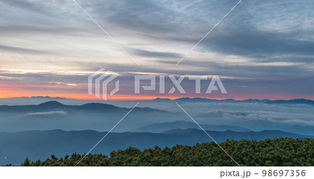 [雲海素材]秋天從長峰山看到的松本平雲海[長野縣]