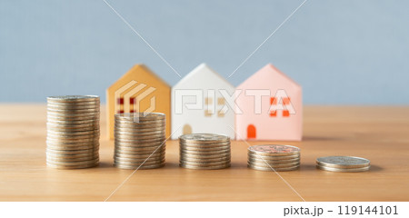 Business home concept involves strategic financial management money coin save bank real estate economic loan investment development growth encourage accountancy buy income stack investment economy