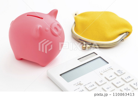 計算機、錢包和存錢罐