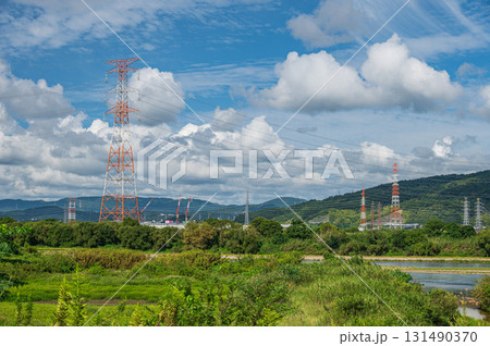 大阪府枚方市高槻市淀川河畔的輸電線塔