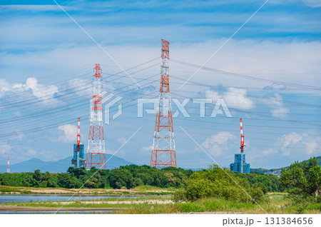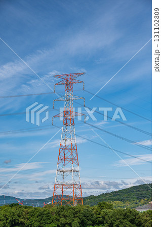 大阪府高槻市淀川河畔的輸電線塔