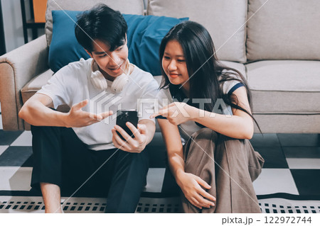 Friends Enjoying a Relaxing Time by the Poolside with Luggage and a Smartphone