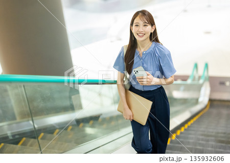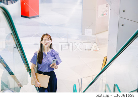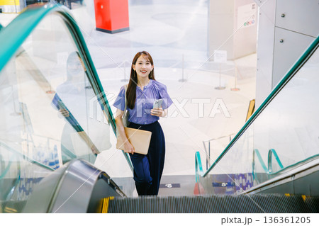 女商人騎自動扶梯