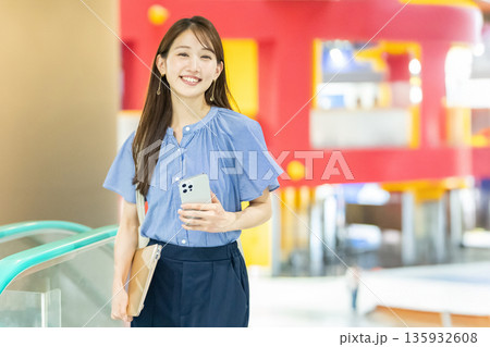 騎自動扶梯的婦女