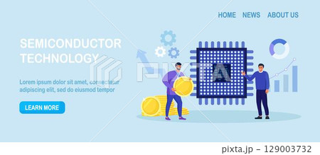 Semiconductor shortage. Businessman gives dollar coins for microchip. Computer chip supply chain shortage due, electronics manufacturing problem. Buyer pay high price for micro CPU. Vector design