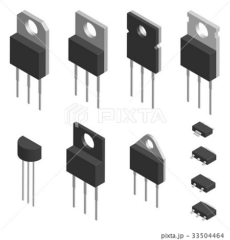 Electronic component isometric set vector illustration isolated on white. Electronics and electrical technology concept.