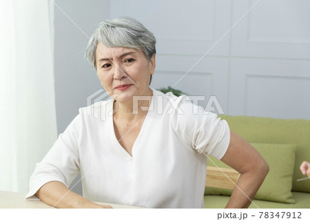 在冠狀病毒(新冠病毒)和流感爆發期間戴口罩的亞洲老年婦女, 病毒和疾病保護,家庭隔離.