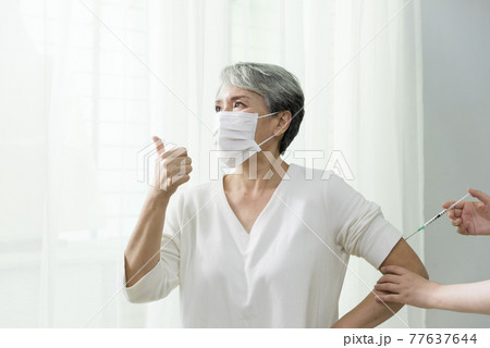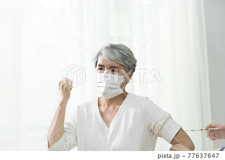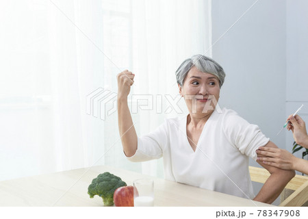 接受醫療注射新冠肺炎疫情幼苗亞洲成熟女性接受抗感染,使者群體免疫。