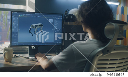 Man creating 3D prototype of robot on pc