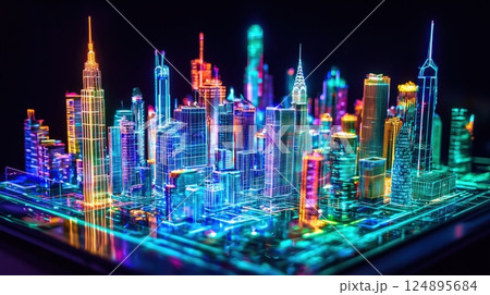 未來霓虹城市的 3D 全息模型