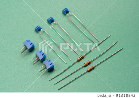 Electronic radio components. Set of microchip, diode, transistor capacitor, resistor. Computer parts.