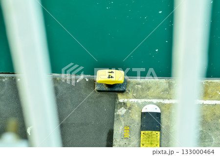 The view from above of the pier with the calm sea. Transportation and nature scene.