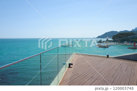 March 23 2025 Relaxation Deck Overlooking Calm Ocean on a Sunny Day, Japan