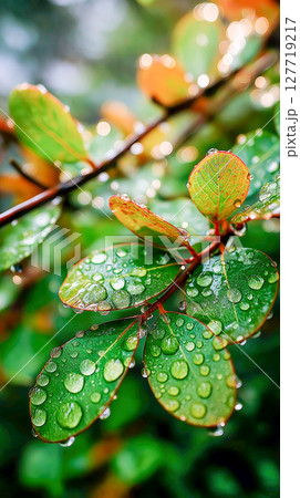 Green leaves with water droplets