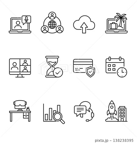 12 Work from Anywhere and Digital Business Line Icons
