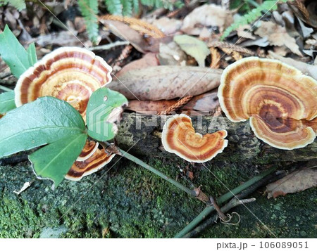 自然世界中生長在枯木側的靈芝