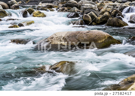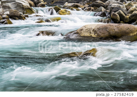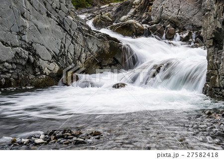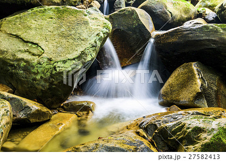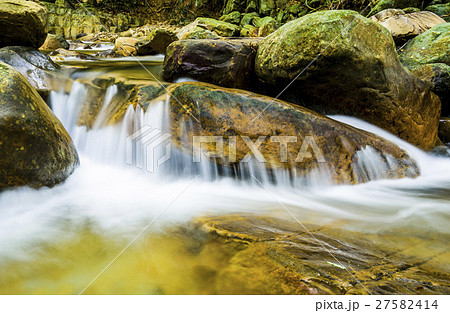 在岩石中流動的溪水